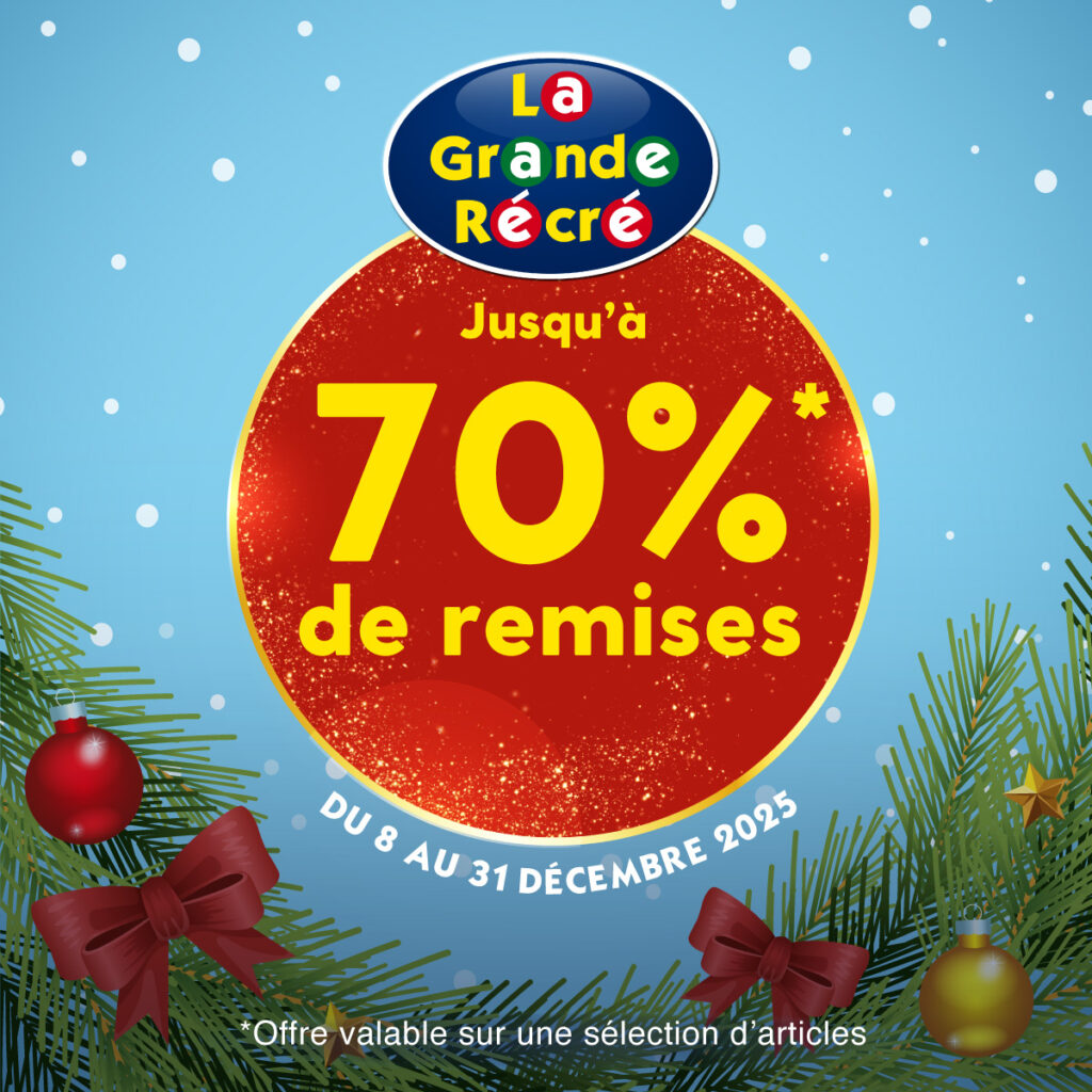 Passez de belles fêtes de fin d’année, avec les jeux et jouets La Grande Récré, offerts avec remises allant jusqu’à 70%, sur une sélection en magasin !