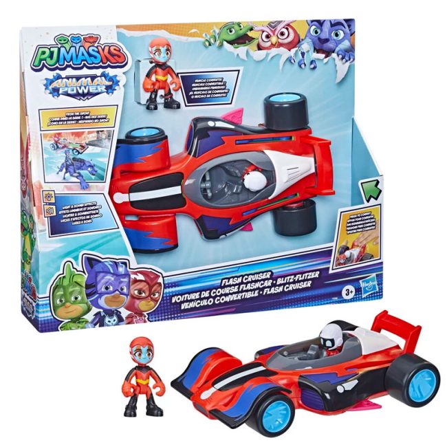Les enfants s’amuseront à faire la course avec la voiture de course Flashcar des Pyjamasques ! Inspiré du nouveau véhicule vue dans la saison 5 du dessin animé, ce jouet inclut des sons et des lumières et se transforme pour révéler des éléments des véhicules volés aux 3 héros. Dans la série, les méchants jumeaux Carly et…