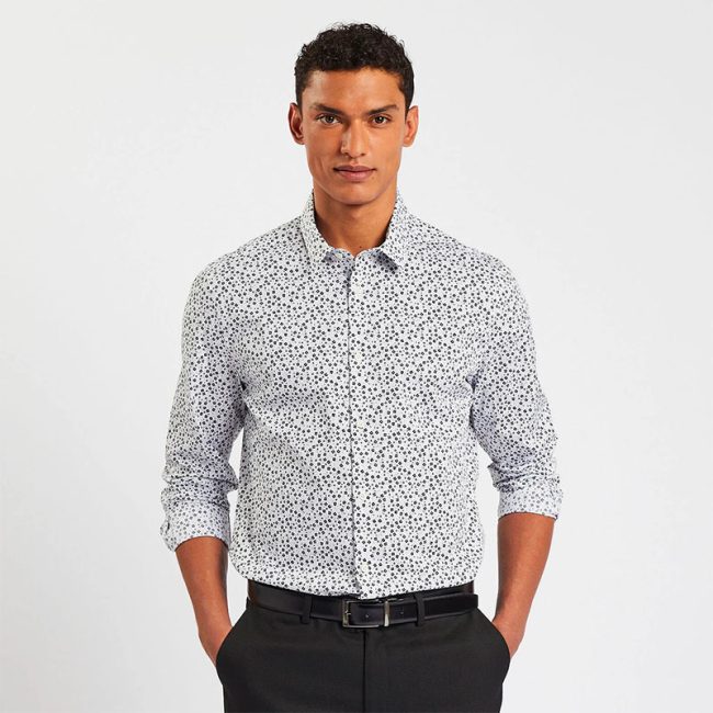 Chemise slim imprimé fleur coton biologique – Ecru: 100389710100