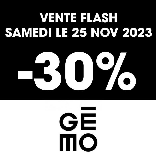 Prêt à vous offrir des chaussures stylées pour les fêtes de fin d’année, ne ratez pas la vente flash chez GEMO ce samedi 25 novembre de 14 à 17 heures : -30% sur TOUTES les chaussures GEMO.