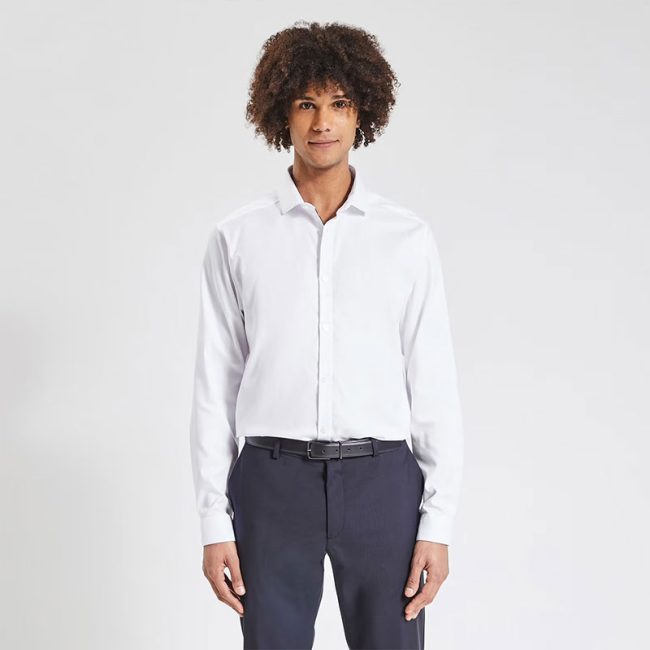 Simple mais élégante, cette chemise unie en coton peut se porter aussi bien avec un chino qu’un pantalon de costume ! Coupe slim ajustée Col italien Fermeture boutonnée Bas de manches boutonnés Base arrondie