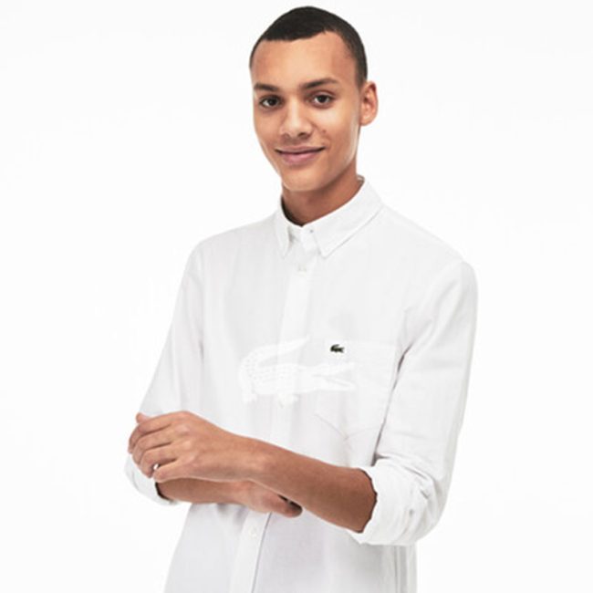 Chemise homme Lacoste monochrome avec poche avec logo Blanc